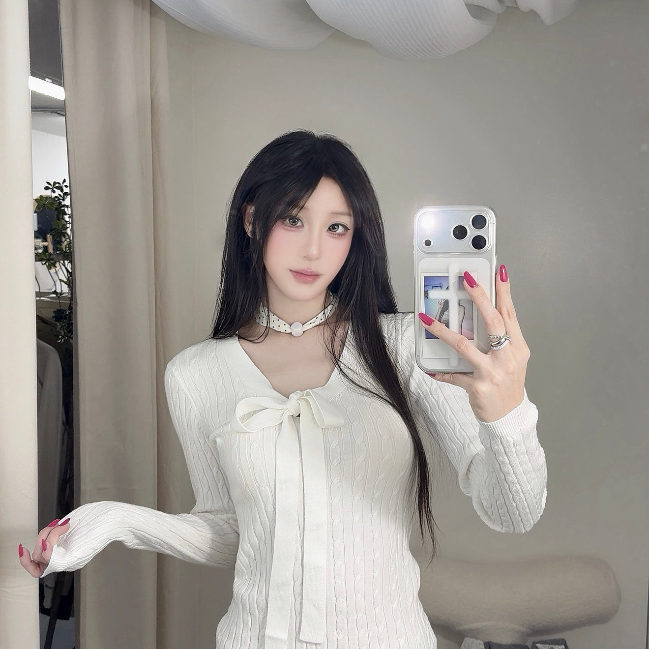 Kroche 2512 细绞花系带蝴蝶结修身针织打底