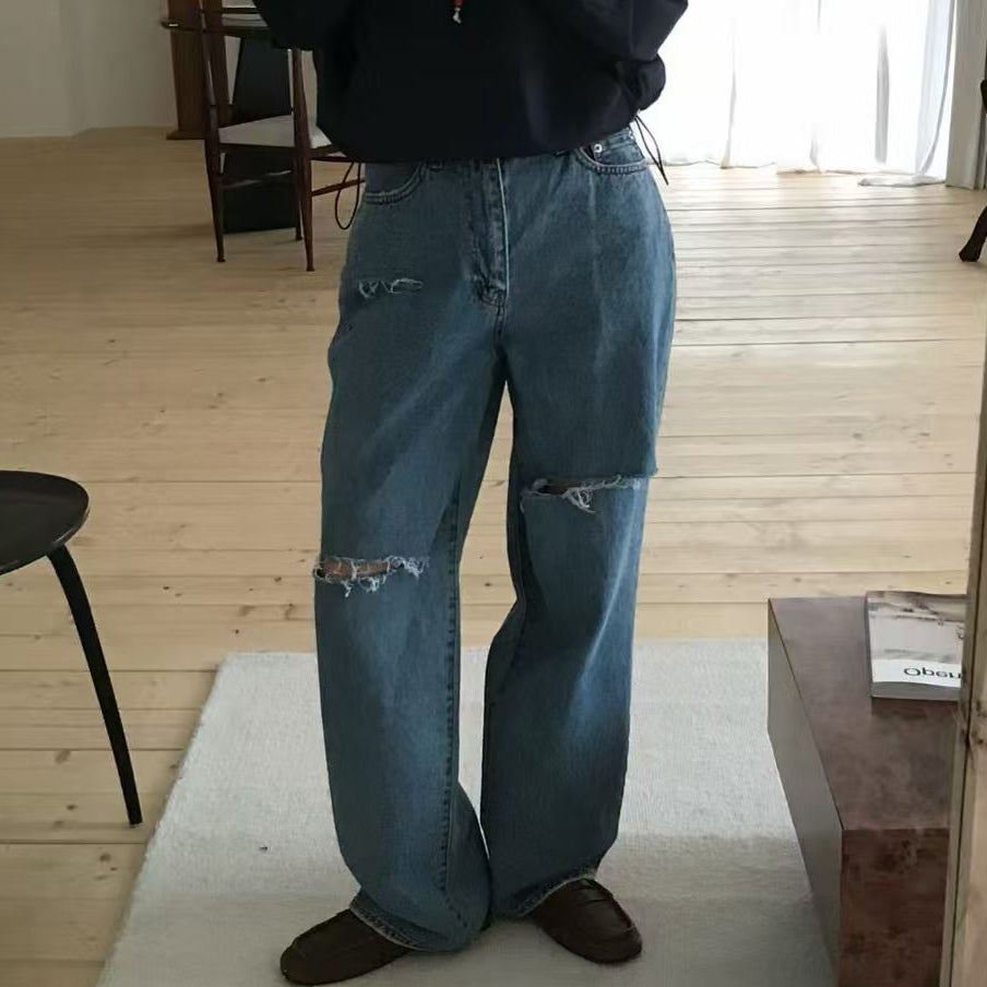 KOREAN COLLECTION 2602 水洗做旧破洞牛仔裤