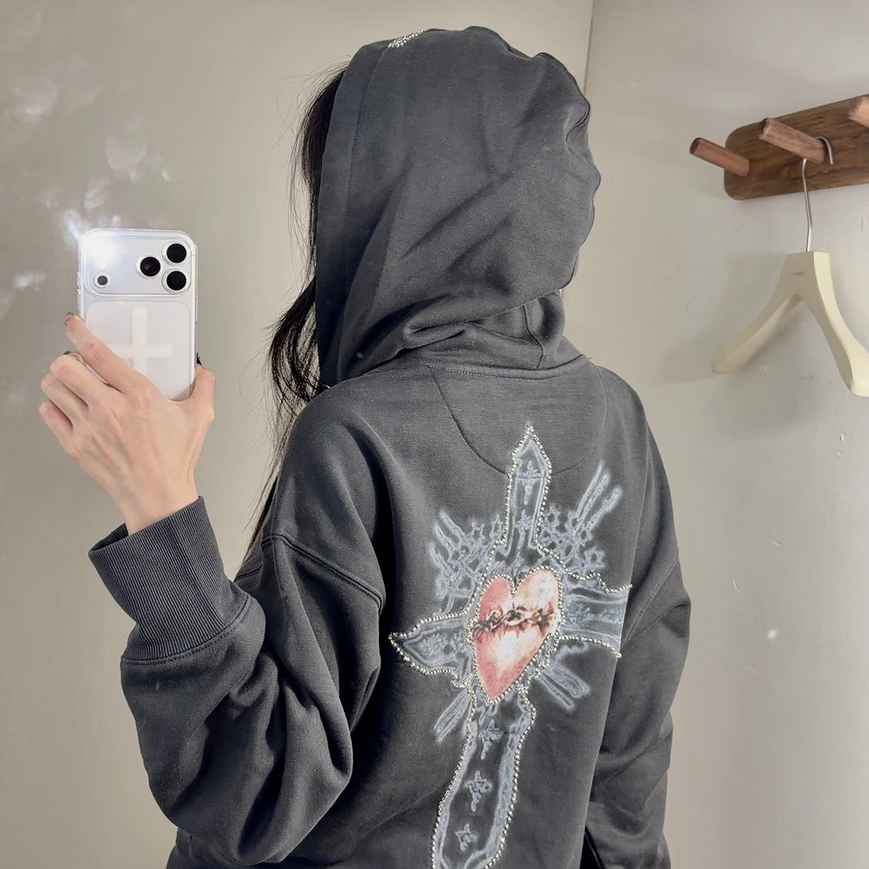 SCULPTOR 2511 Beaded Saint Hoodie Zip-Up Dirty Charcoal