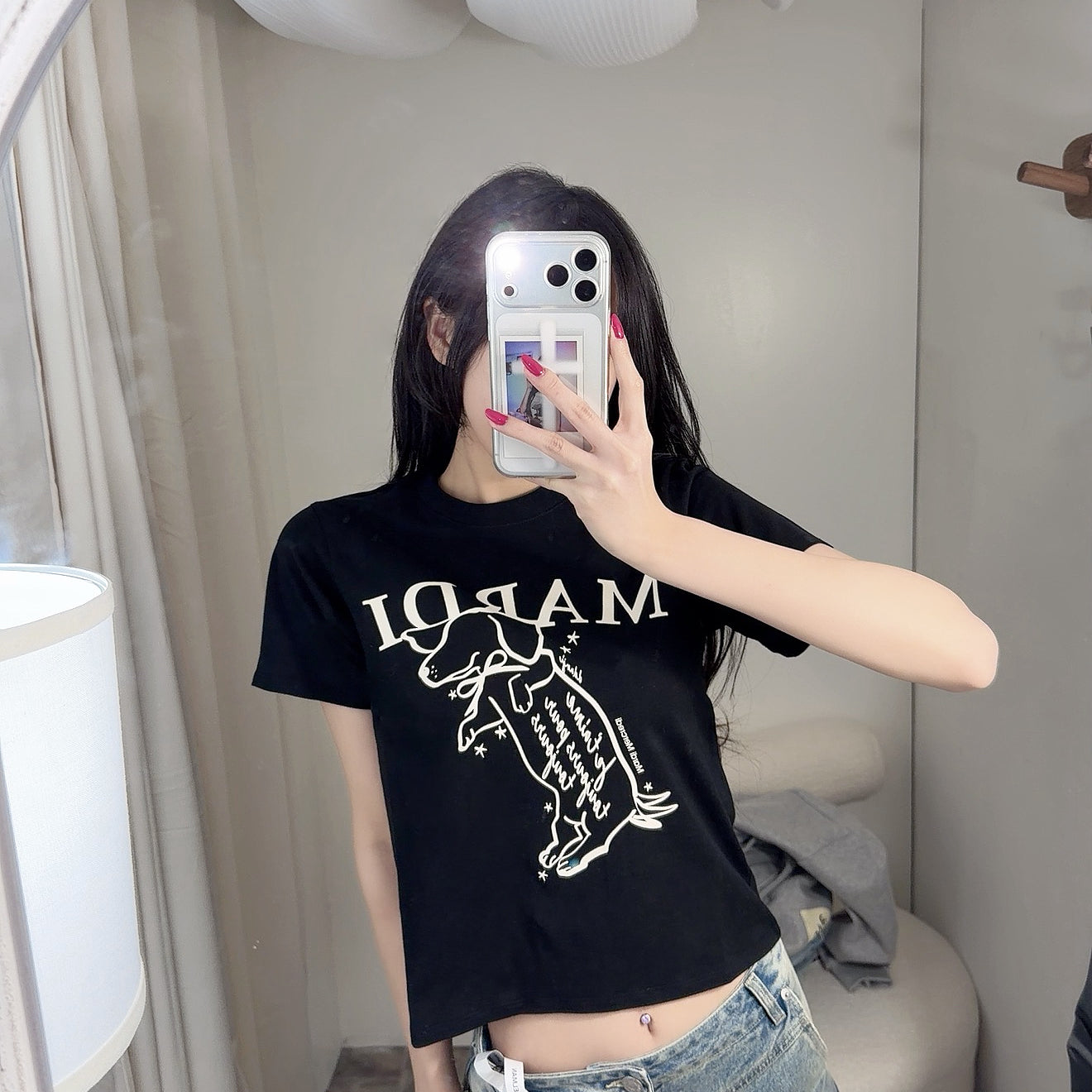 MARDI MERCREDI 2506 正脸珍珠小狗短袖t恤 黑白