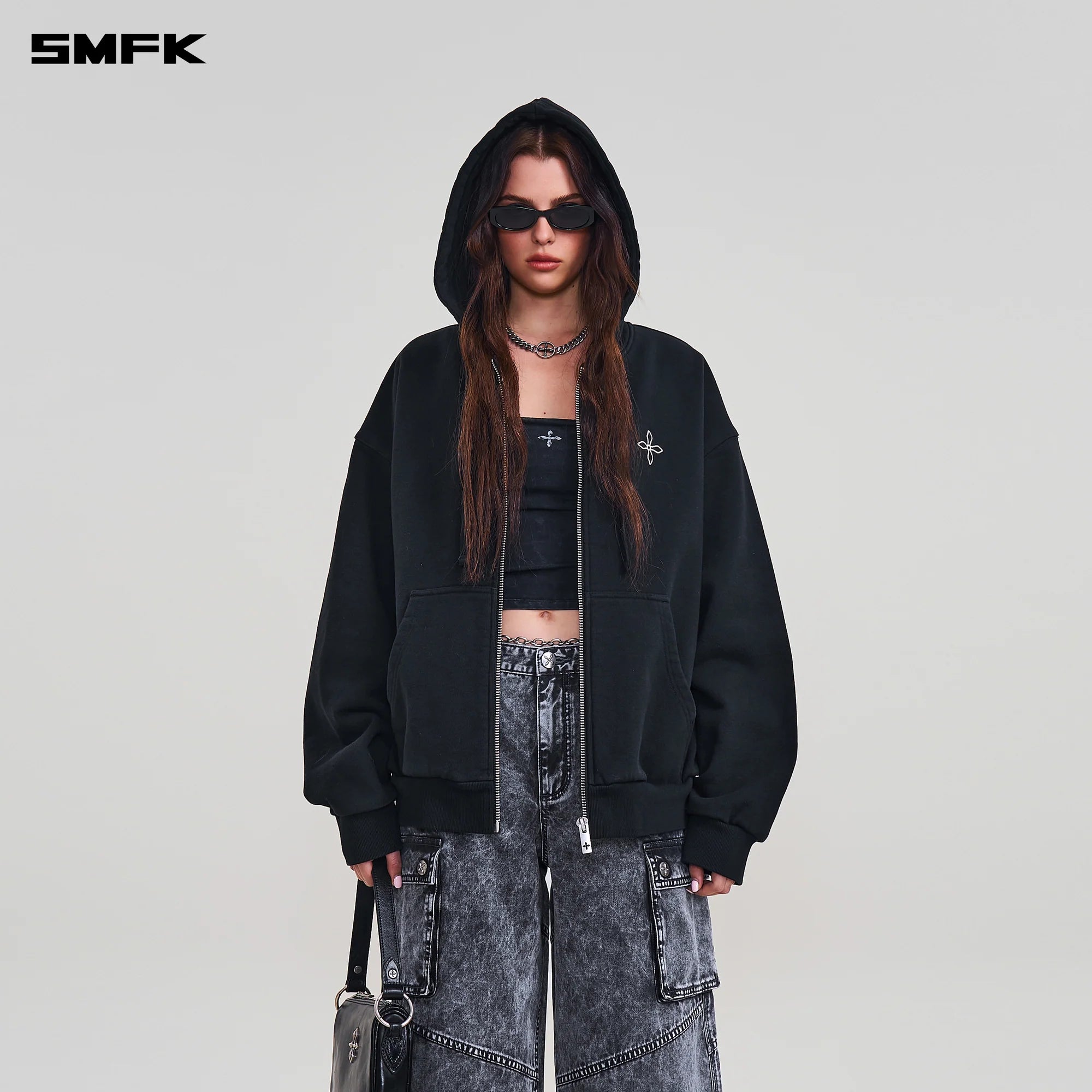 SMFK 2604 十字雕像阔身拉链帽衫 荒野黑