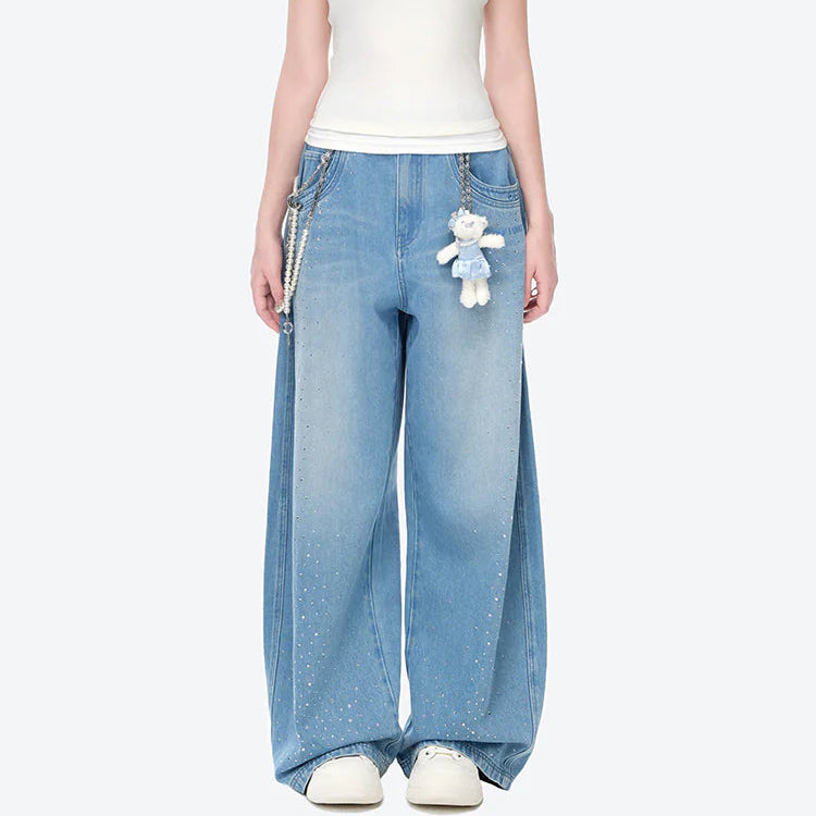 13DE MARZO | 2604 Faux Rhinestones Pearl Chains Jeans Blue