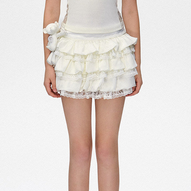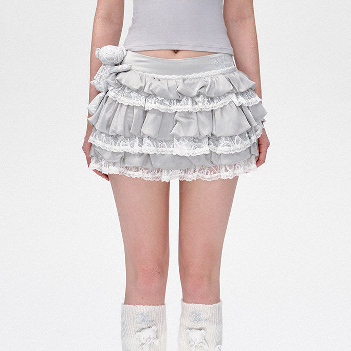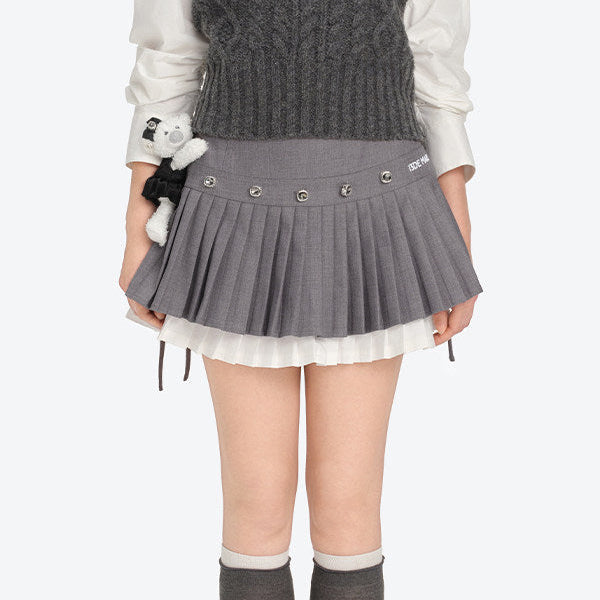 13DE MARZO | 2604 Faux Rhinestones Double-Layer Pleated Skirt Grey