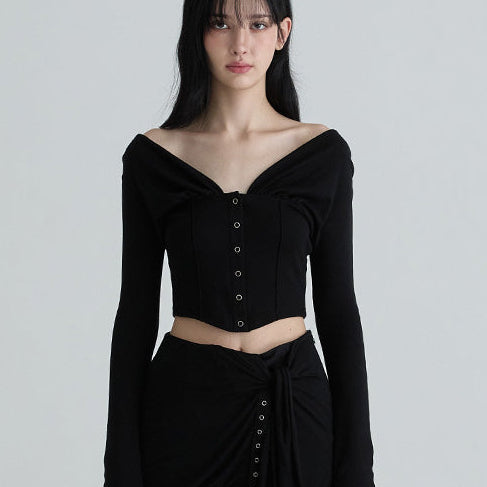 NOT YOUR ROSE 2603 Off shoulder ribbon top (Black)