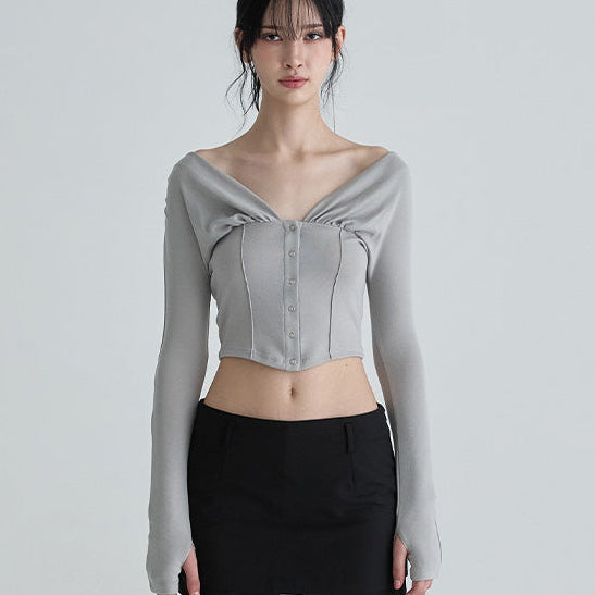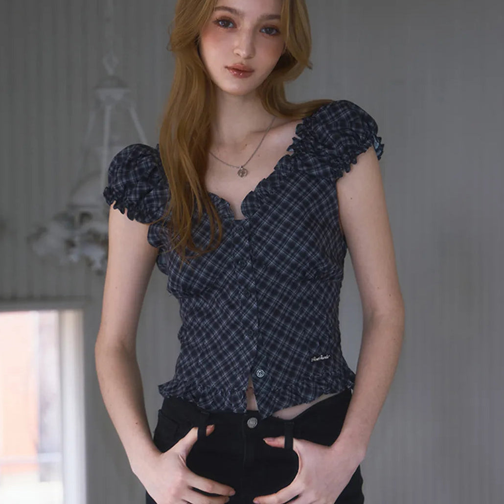 SEOOOCOOKIE 2601 Momo Charcoal Ribbon Top
