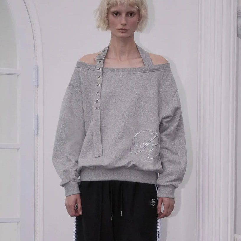 ROSE FRANTZ 2603 Eyelet Strap Open Sweatshirt Gray
