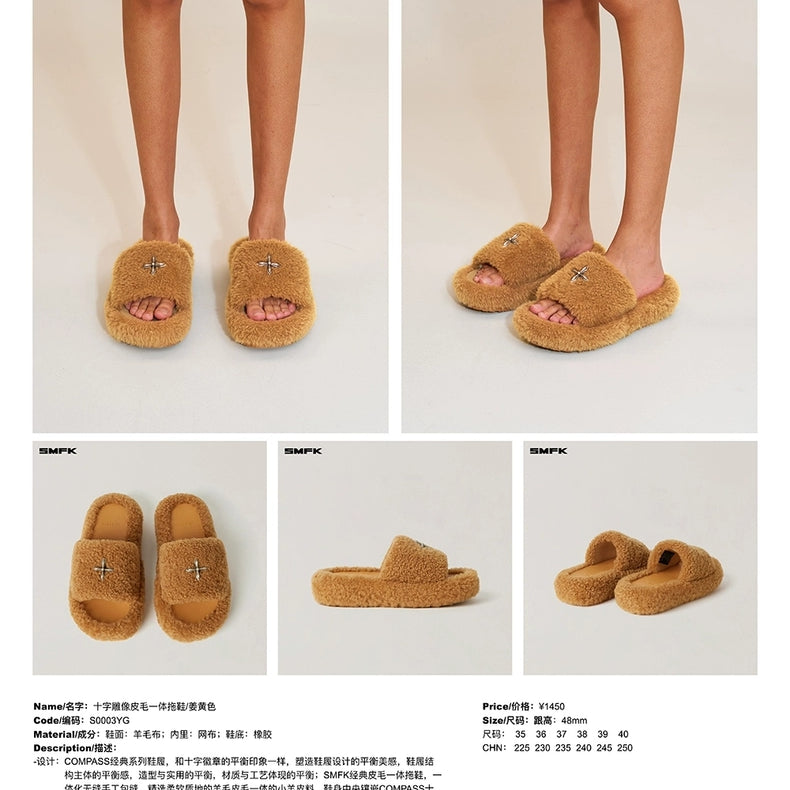 SMFK 2510 十字雕像皮毛一体拖鞋 姜黄