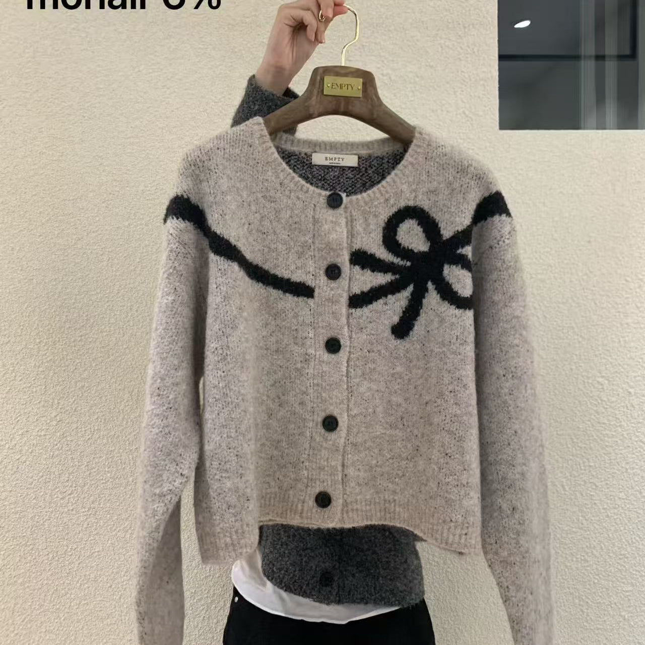 KOREAN COLLECTION 2511 蝴蝶结印花毛衣开衫 燕麦