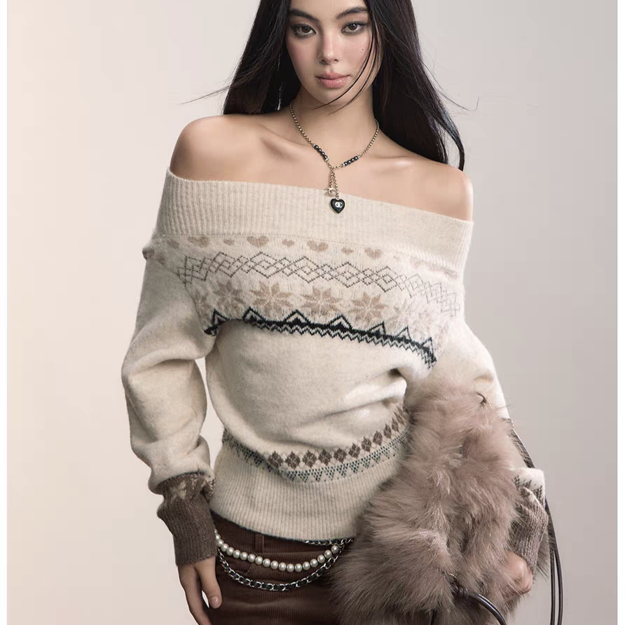 VIA PITTI 2511 费尔岛风一字肩针织毛衣