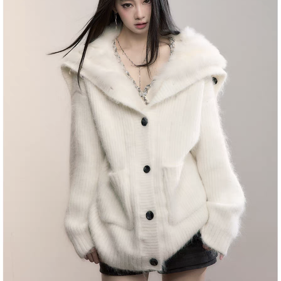 VIA PITTI 2511 重磅狐狸毛大翻领毛织外套 白