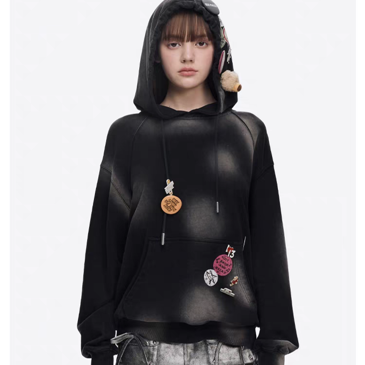 13DE MARZO | 2509 Badge Retro Hoodie Black