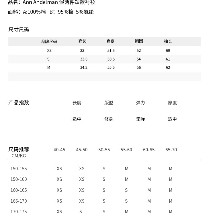 ANN ANDELMAN 2411 POLO领两件套短款衬衫
