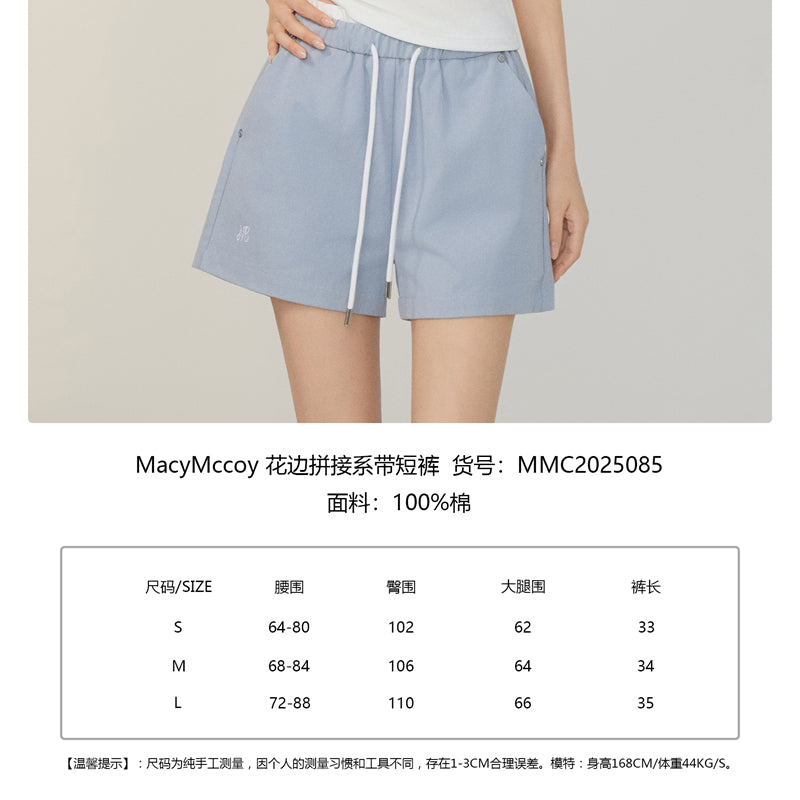 MacyMccoy 2506 花边拼接系带短裤 蓝