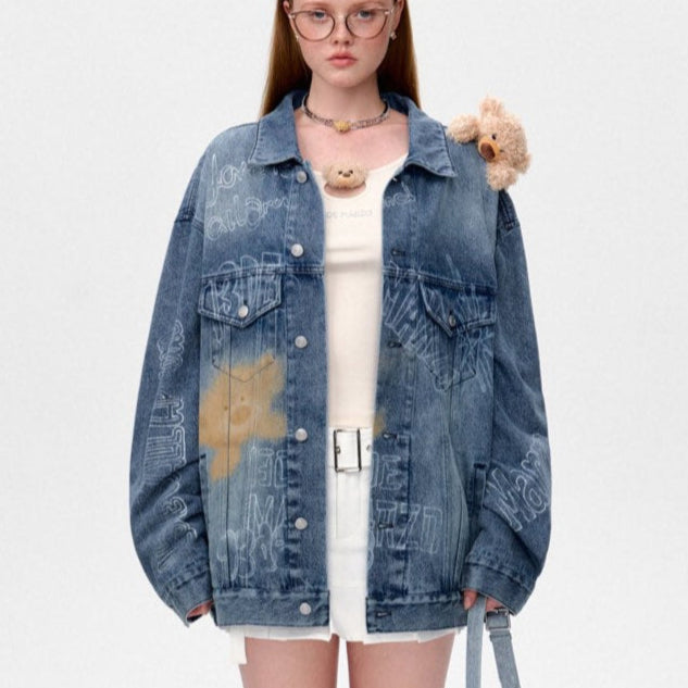 13DE MARZO | 2501 Slogan Graffiti Denim Jacket Blue