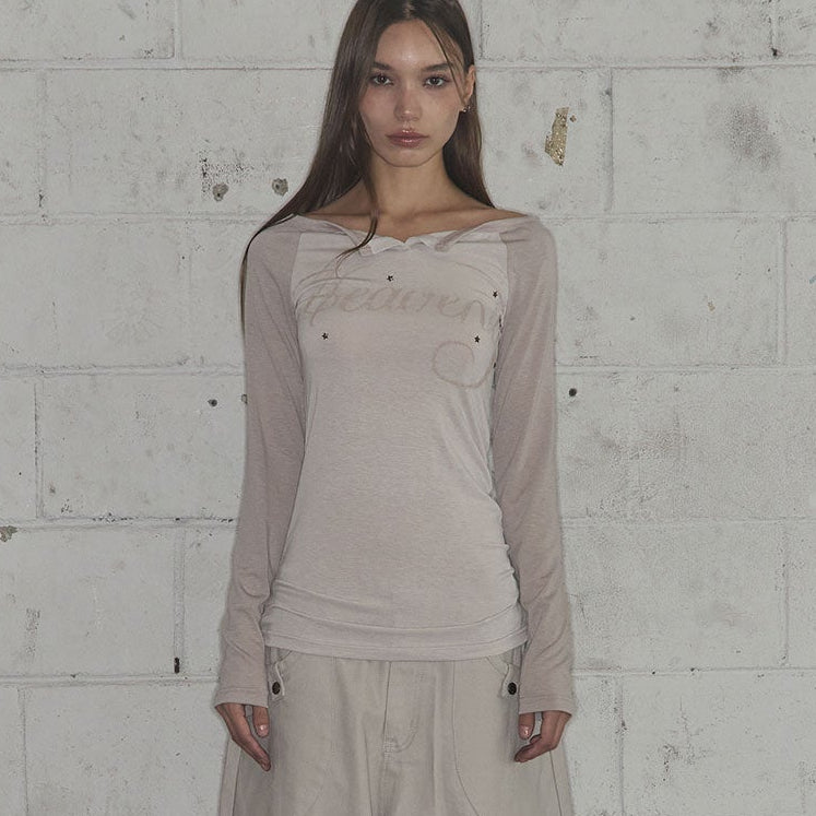 FANCY CLUB 2603 Heavenly Off-Shoulder Long Sleeve BEIGE