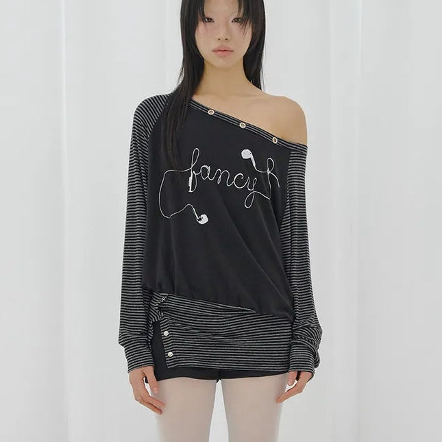 FANCY CLUB 2603 Drawing Stripe Off-Shoulder GRAY