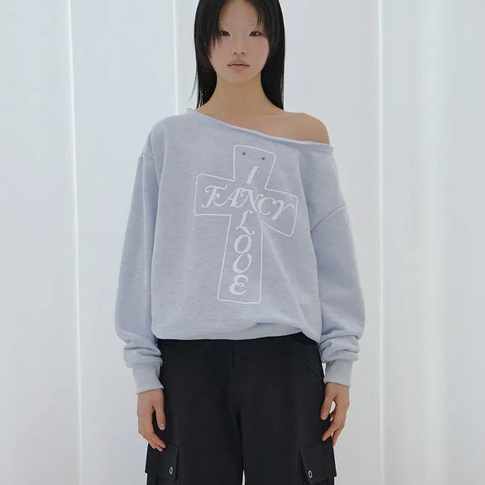 FANCY CLUB 2603 Pros Off-Shoulder Sweatshirt BLUE MELANGE