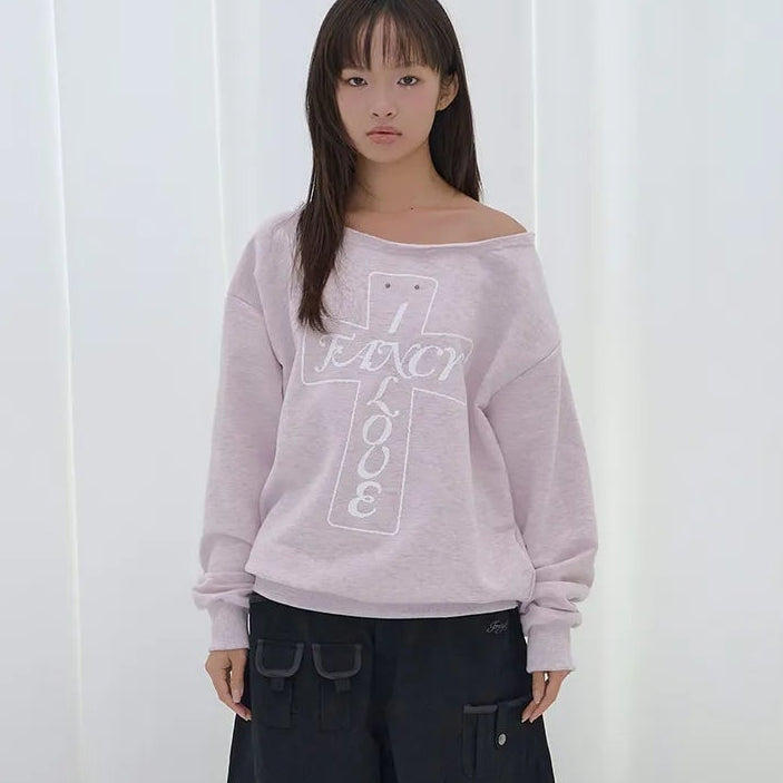FANCY CLUB 2603 Pros Off-Shoulder Sweatshirt PINK MELANGE