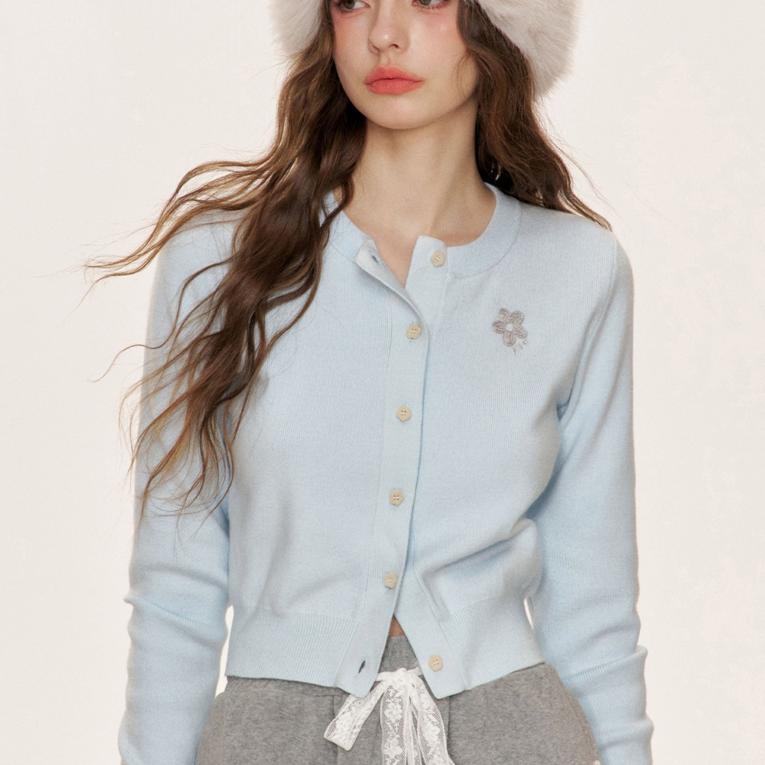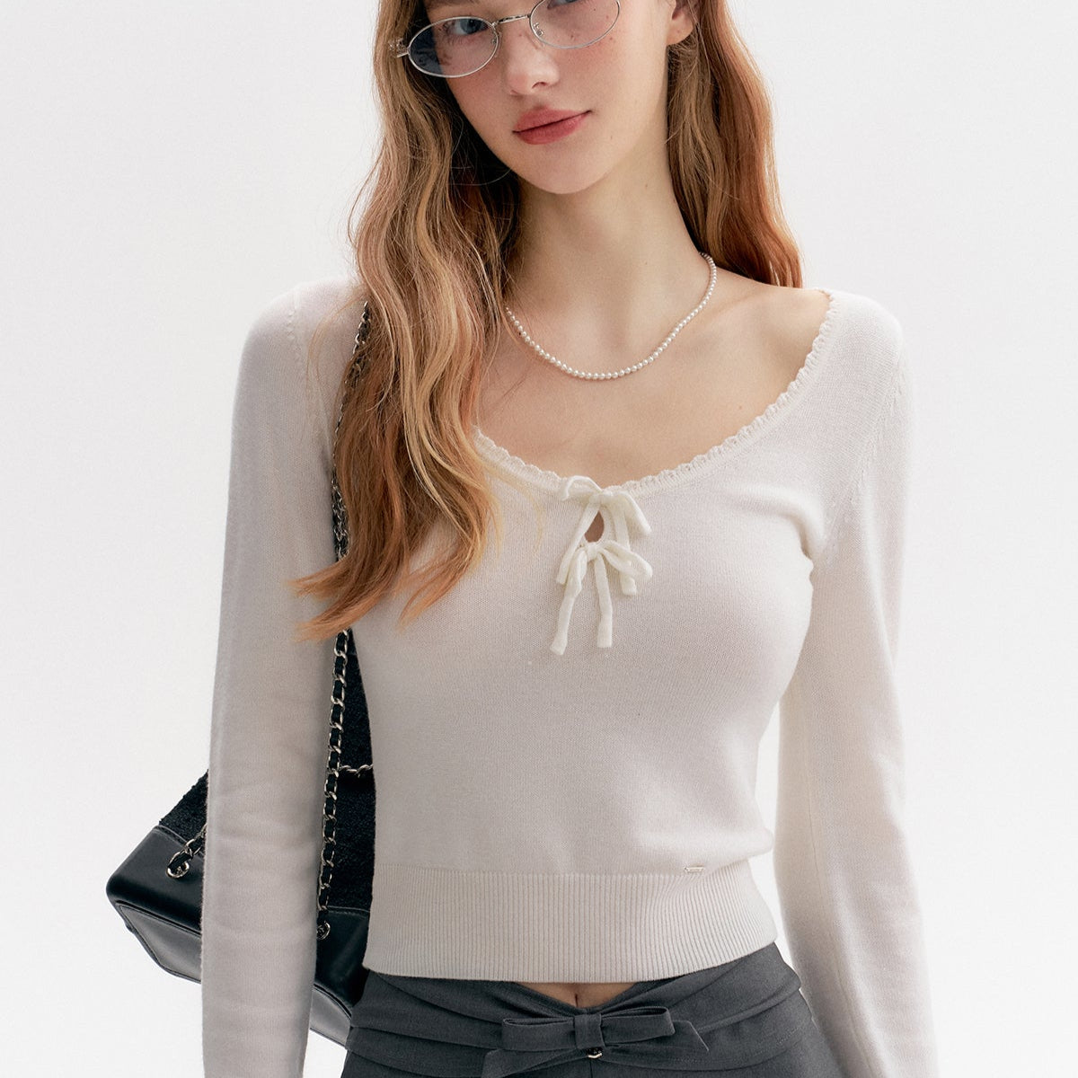 Kroche 2509 波浪花边大U领修身长袖针织衫