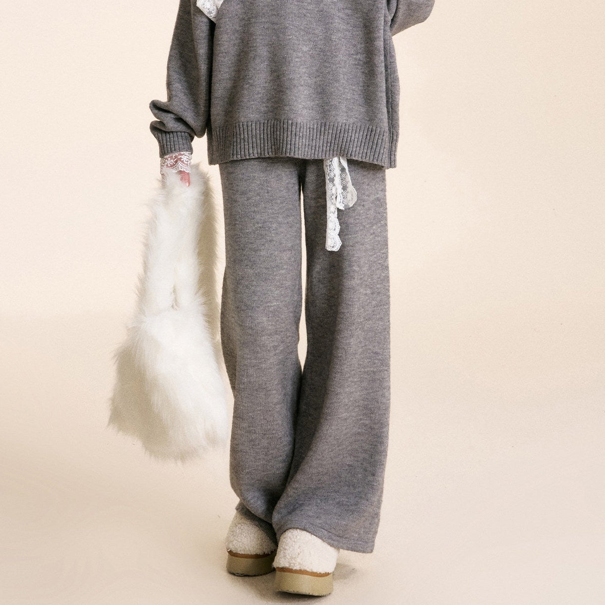 Kroche 2601 蕾丝腰头系带针织阔腿裤