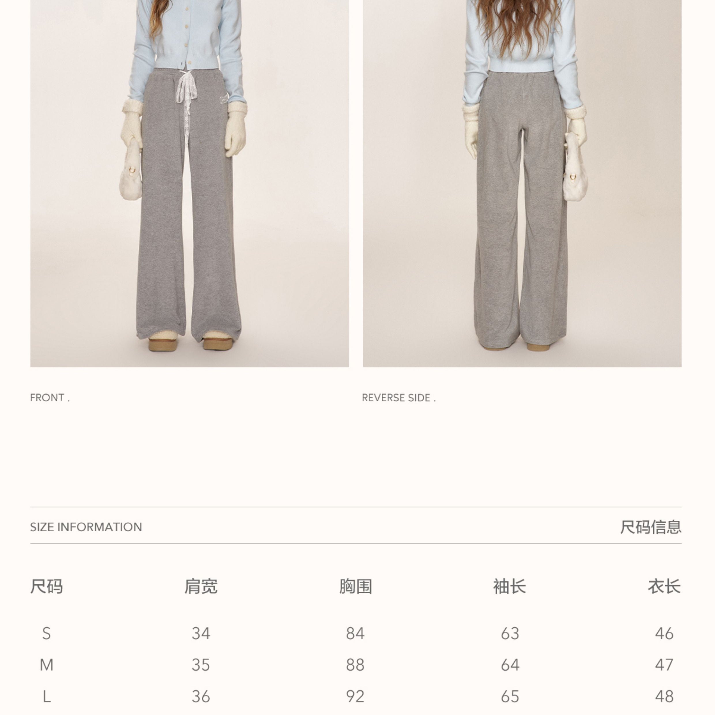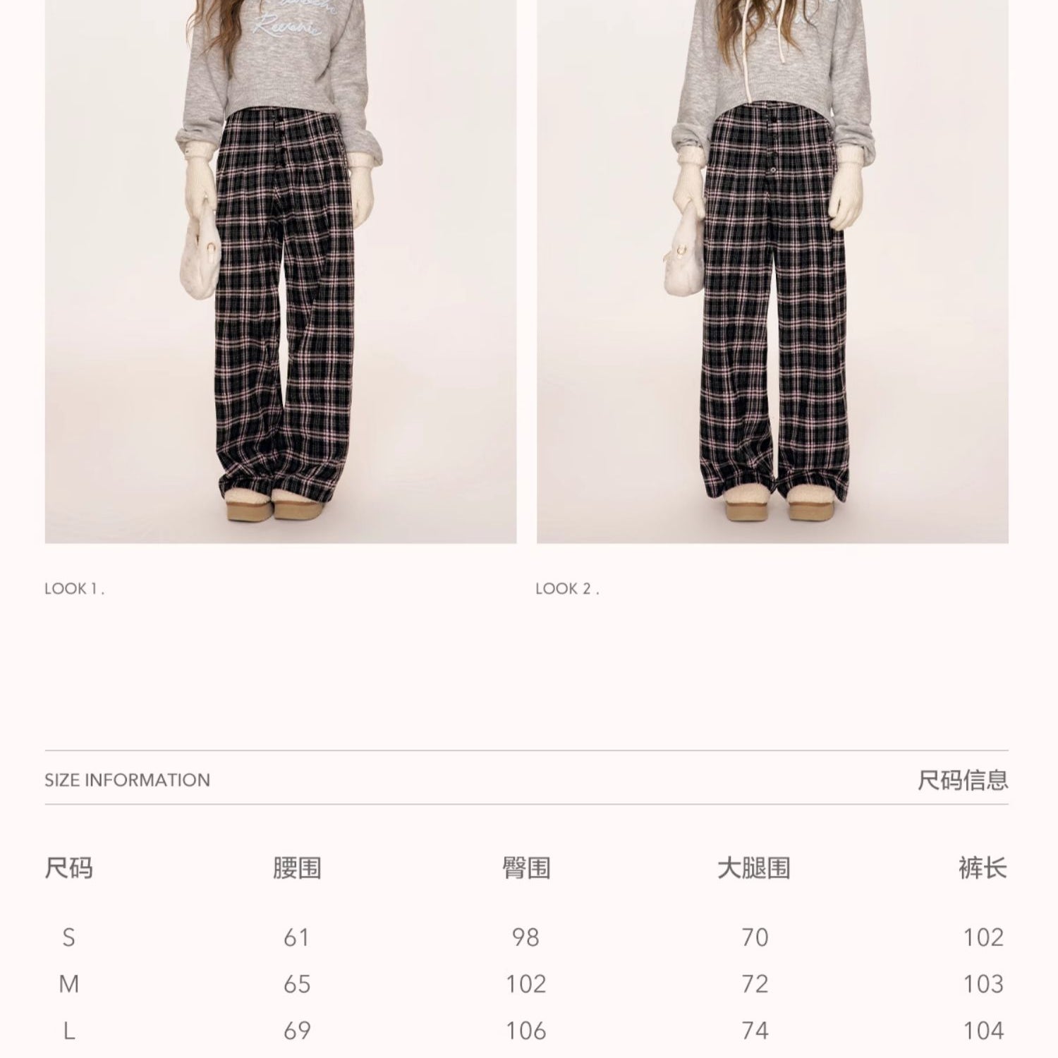 Kroche 2509 格纹花边拼接抽绳阔腿休闲卫裤 灰