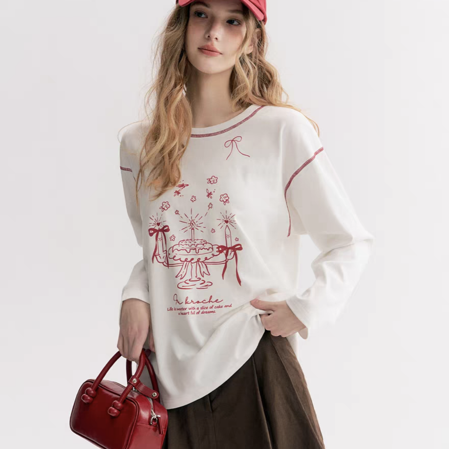 Kroche 2507 腊肠小狗 慵懒亲肤棉质斜肩短袖