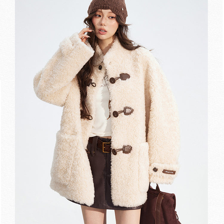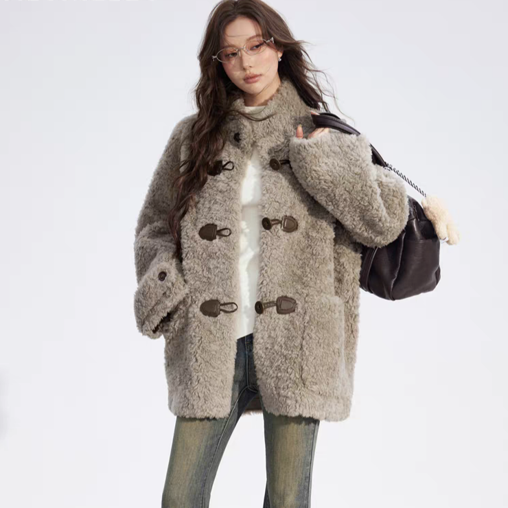 MacyMccoy 2512 羊毛皮扣大外套 灰绿