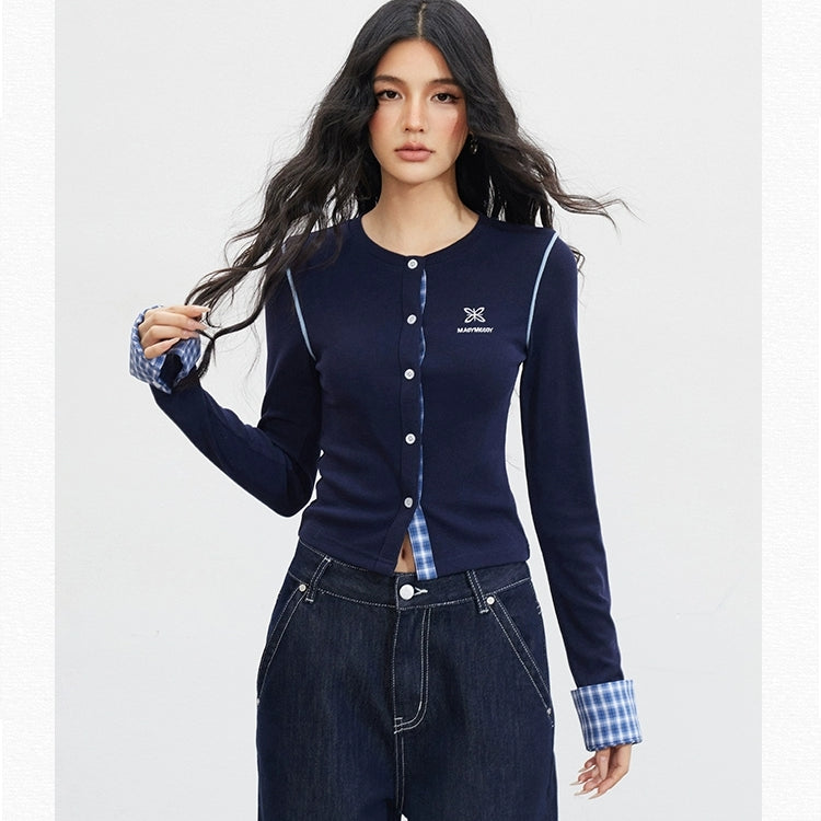 MacyMccoy 2601 假两件V领刺绣毛衣 咖