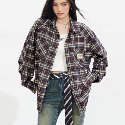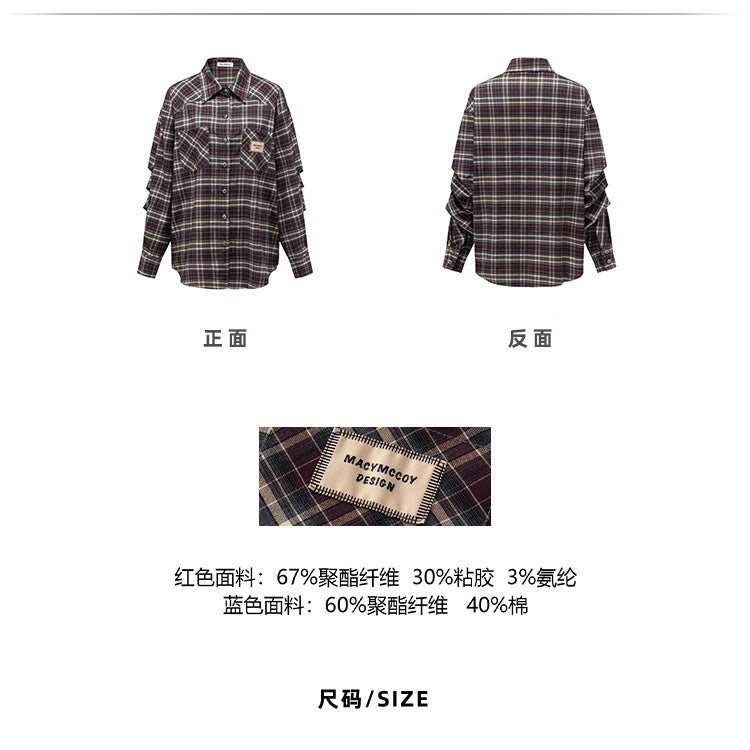 MacyMccoy 2510 复古宽松长袖格子衬衫 红格
