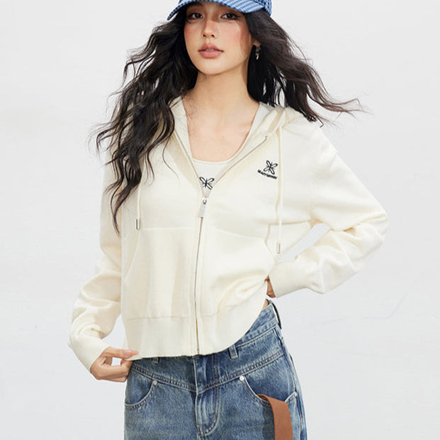 MacyMccoy 2510 连帽刺绣针织开衫 米白