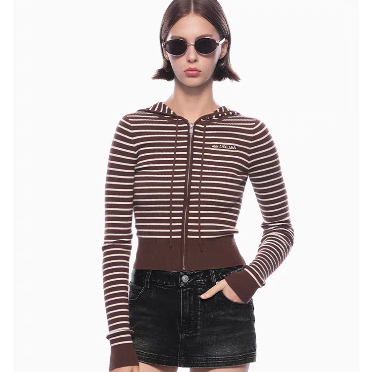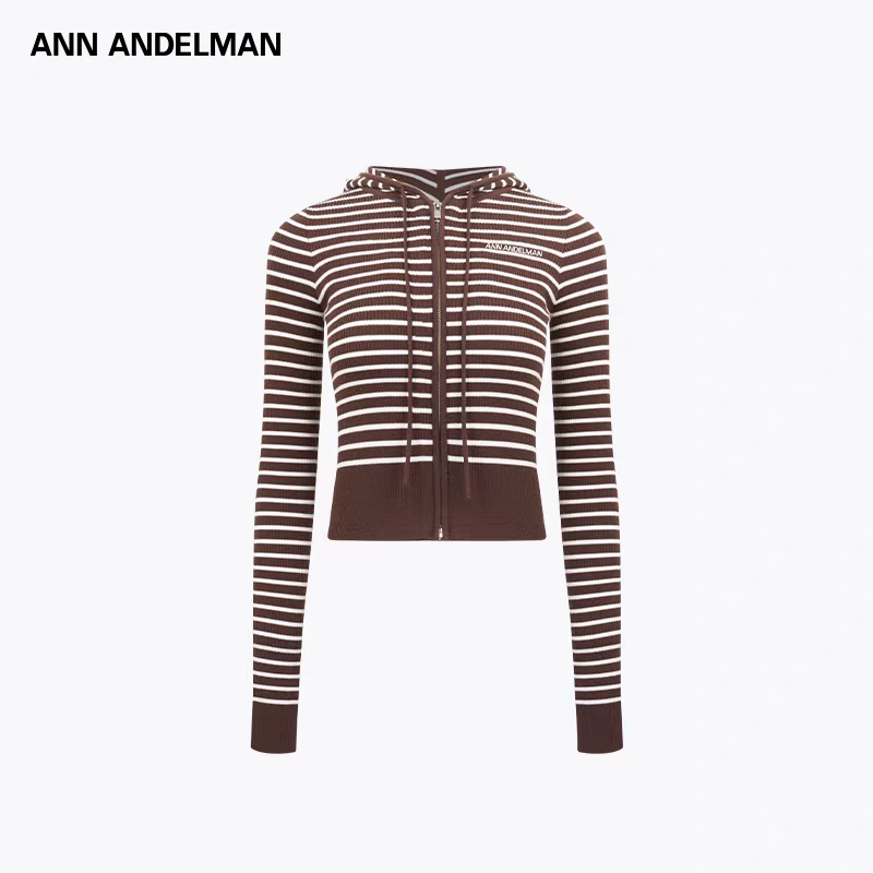 ANN ANDELMAN 2510 条纹连帽针织衫 卡其