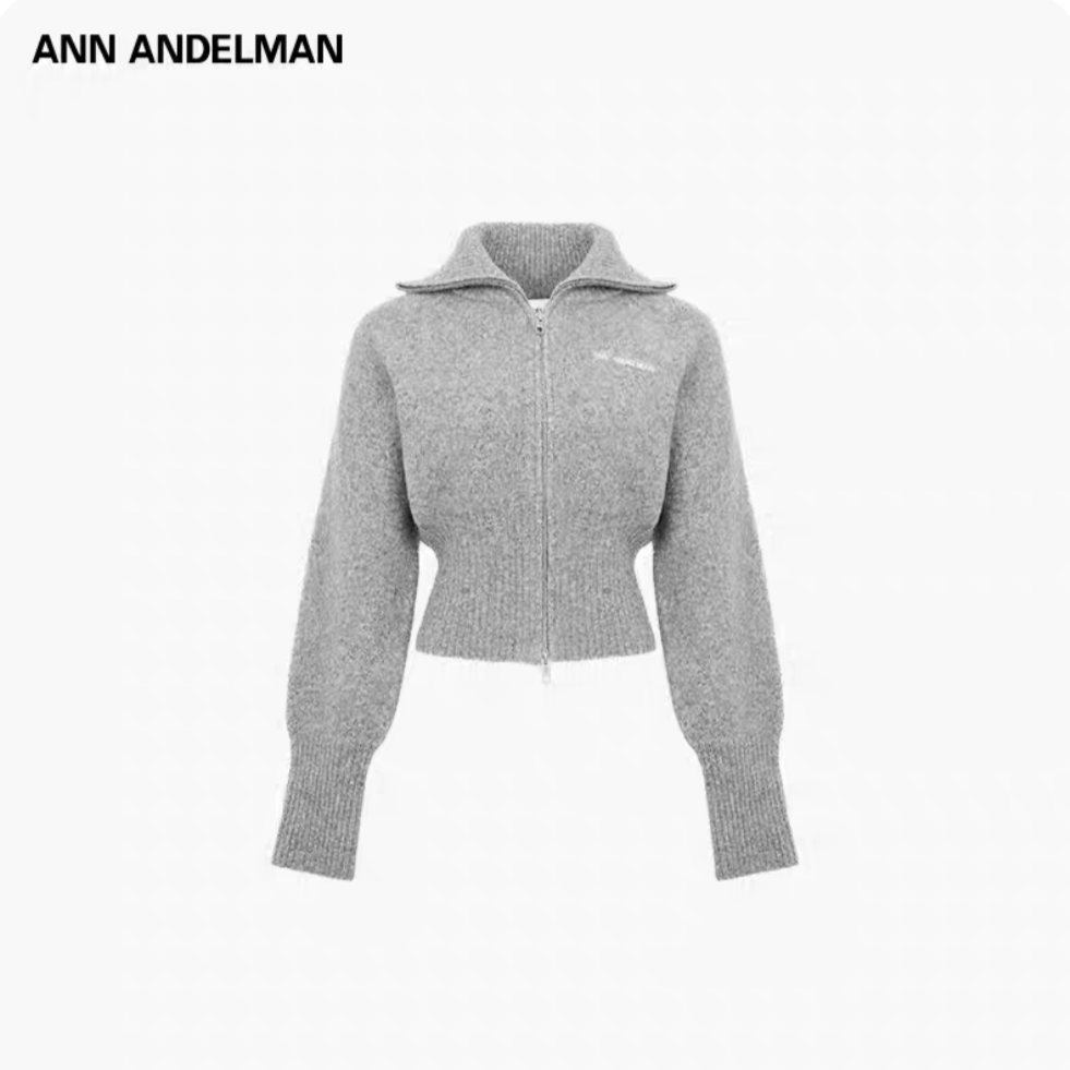 ANN ANDELMAN 2510 收腰开胸拉链毛衣 花灰