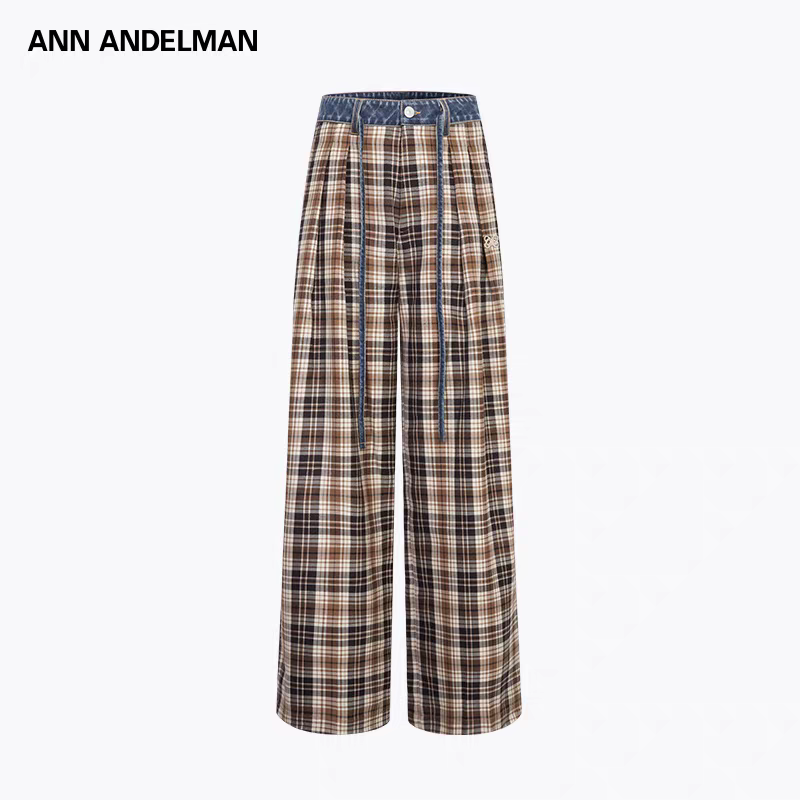 ANN ANDELMAN 2510 拼接牛仔格纹休闲裤 卡其