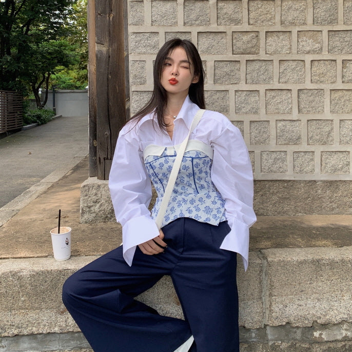 SEOOOCOOKIE 2601 Blue Rose Corset Top