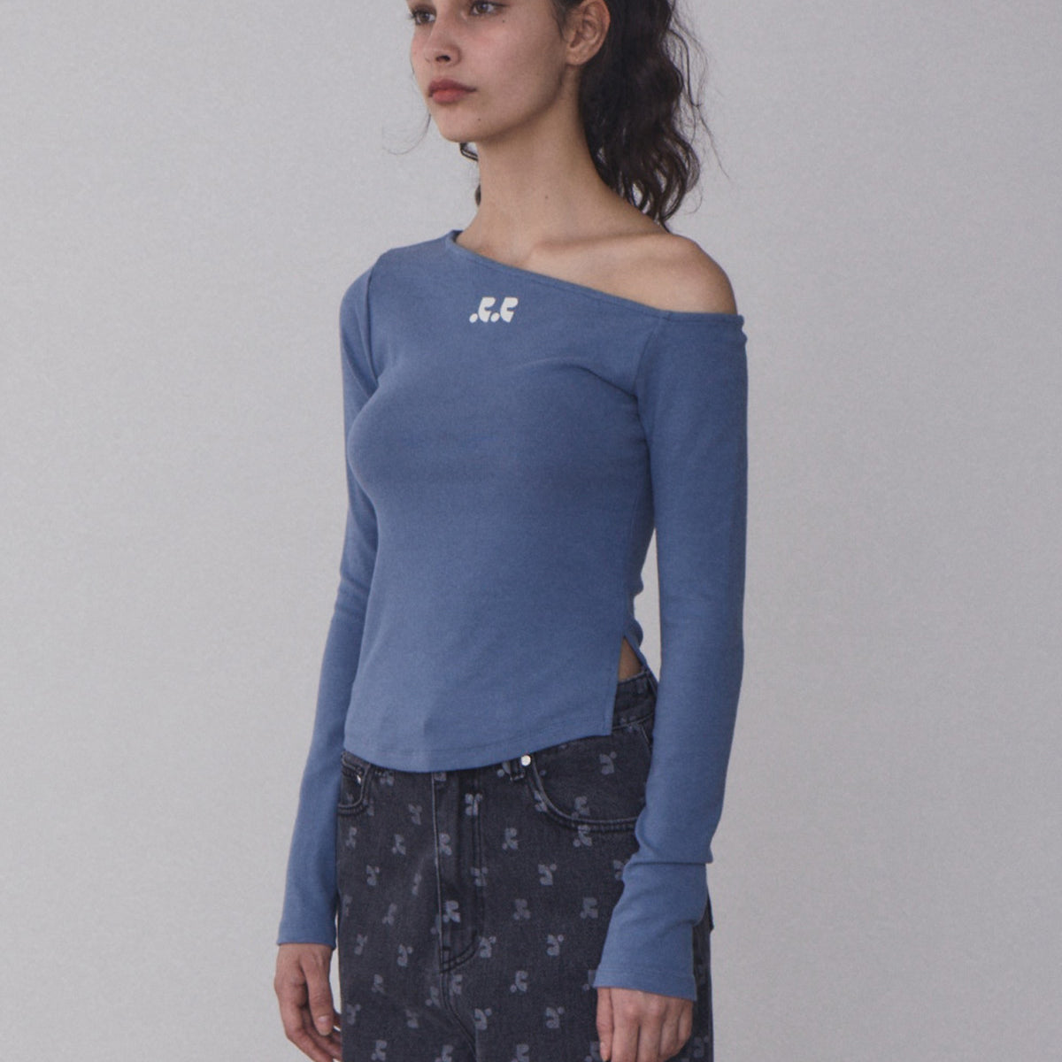 REST & RECREATION 2510 ONE SHOULDER LONG SLEEVE TOP - BLUE