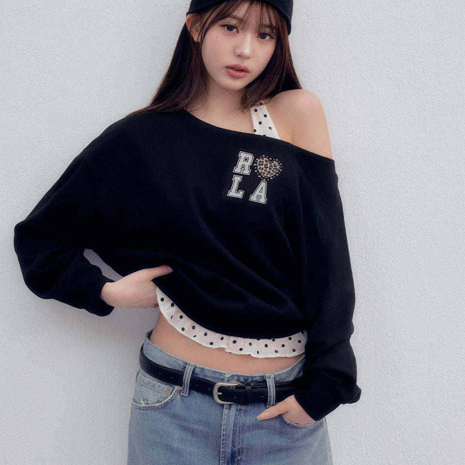 ROLAROLA 2603 I LOVE ROLA OFF SHOULDER SWEATSHIRT BLACK
