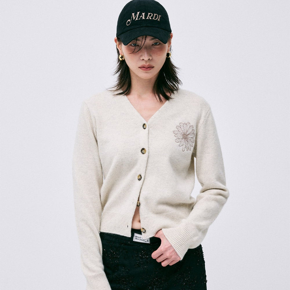 MARDI MERCREDI 2511 RACCOON BLENDED CARDIGAN V NECK_OATMEAL BEIGE
