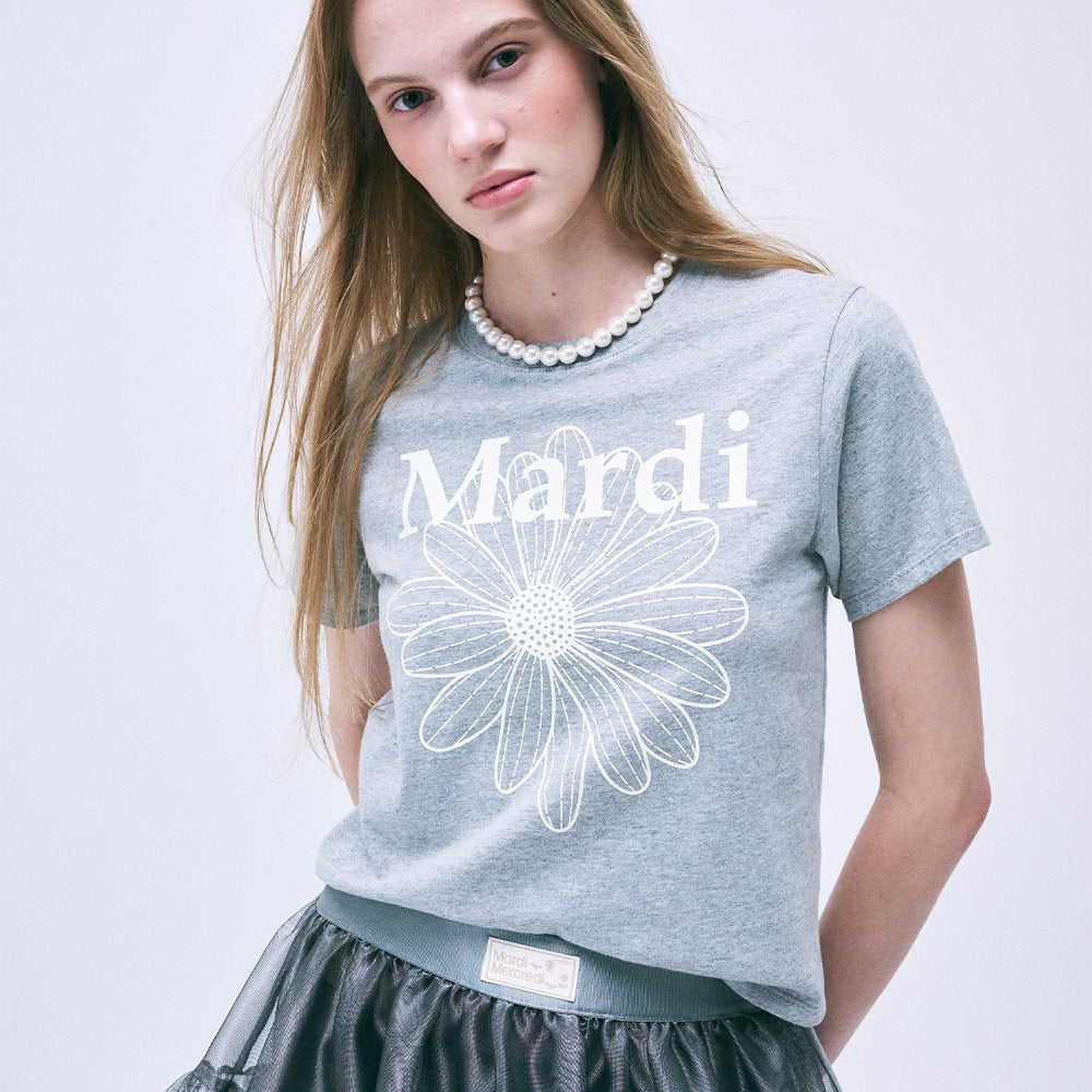 MARDI MERCREDI 2511 SLIM TSHIRT FLOWERMARDI_GREY IVORY
