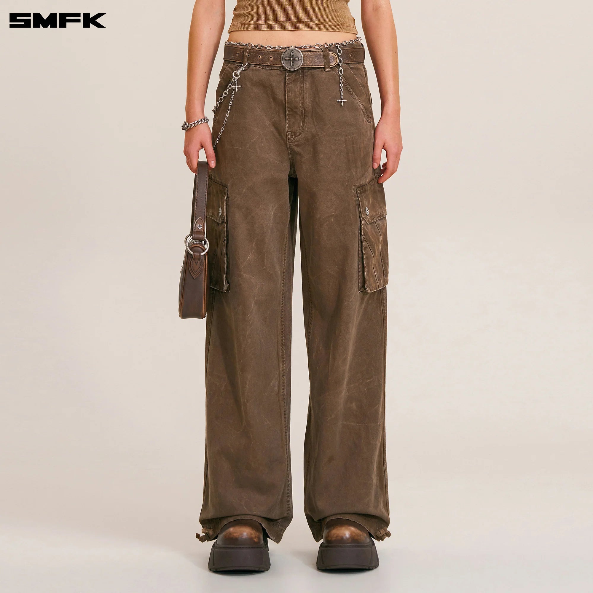SMFK 2510 野性起源手工染色宽直筒工装裤 影棕