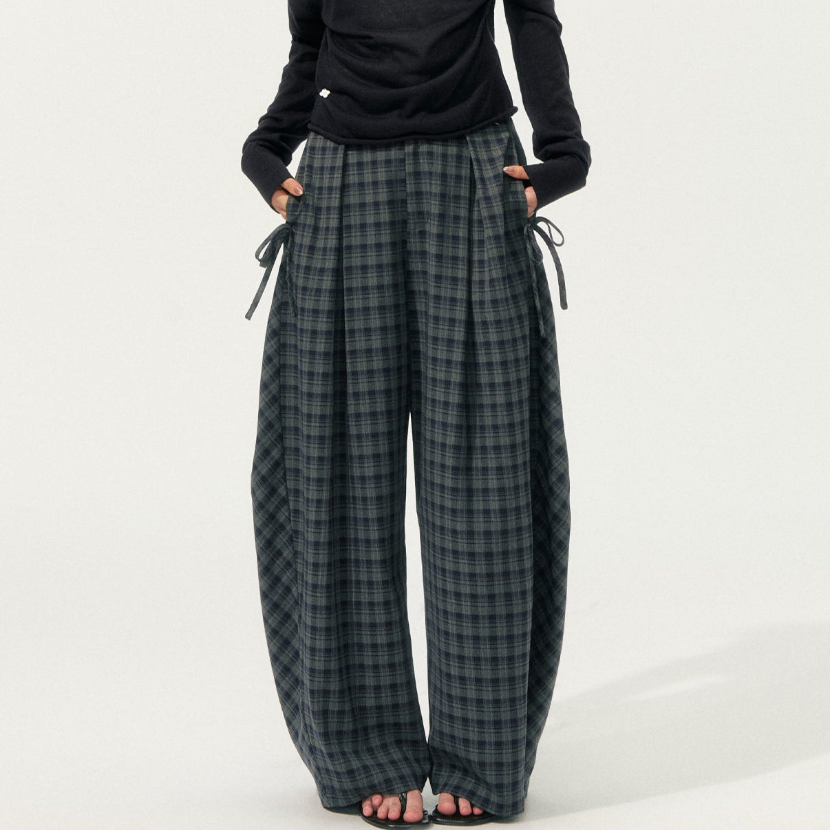 SOMESOWE 2509 慵懒格纹阔腿休闲裤
