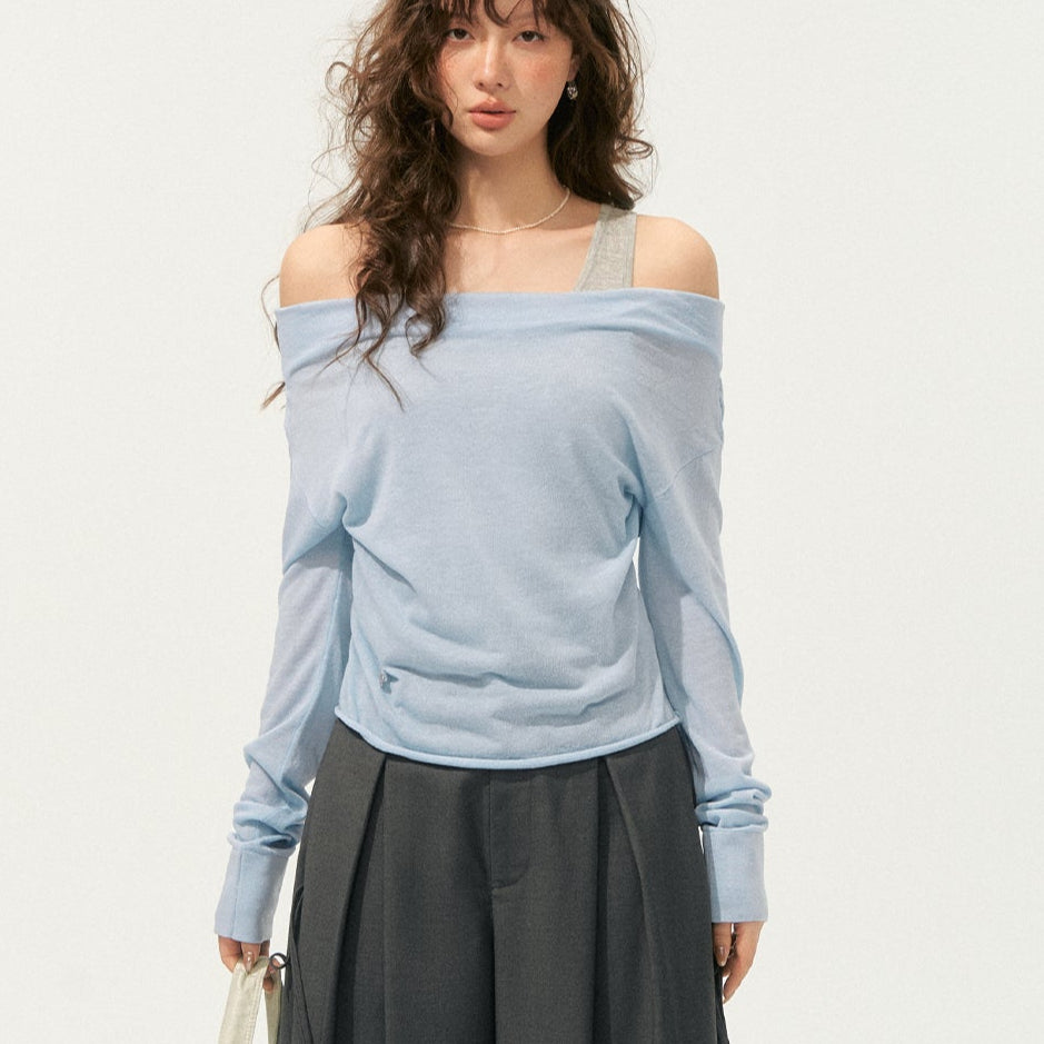 SOMESOWE 2506 设计感荷叶边一字领上衣