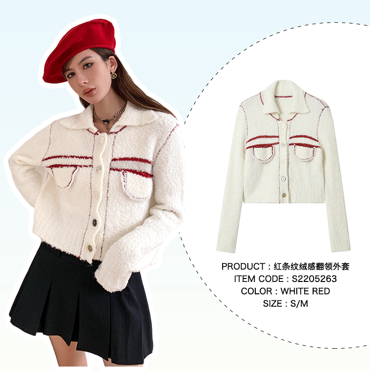 SOMESOWE 红条纹绒感翻领外套