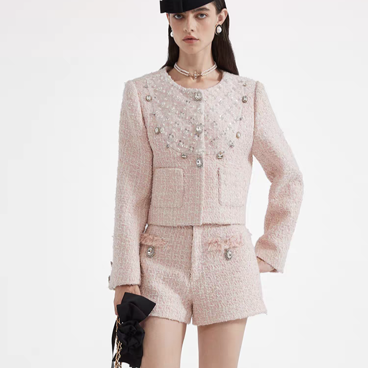 KINGWEN 2510 编织网纱珠钻外套+编织拼接短裤