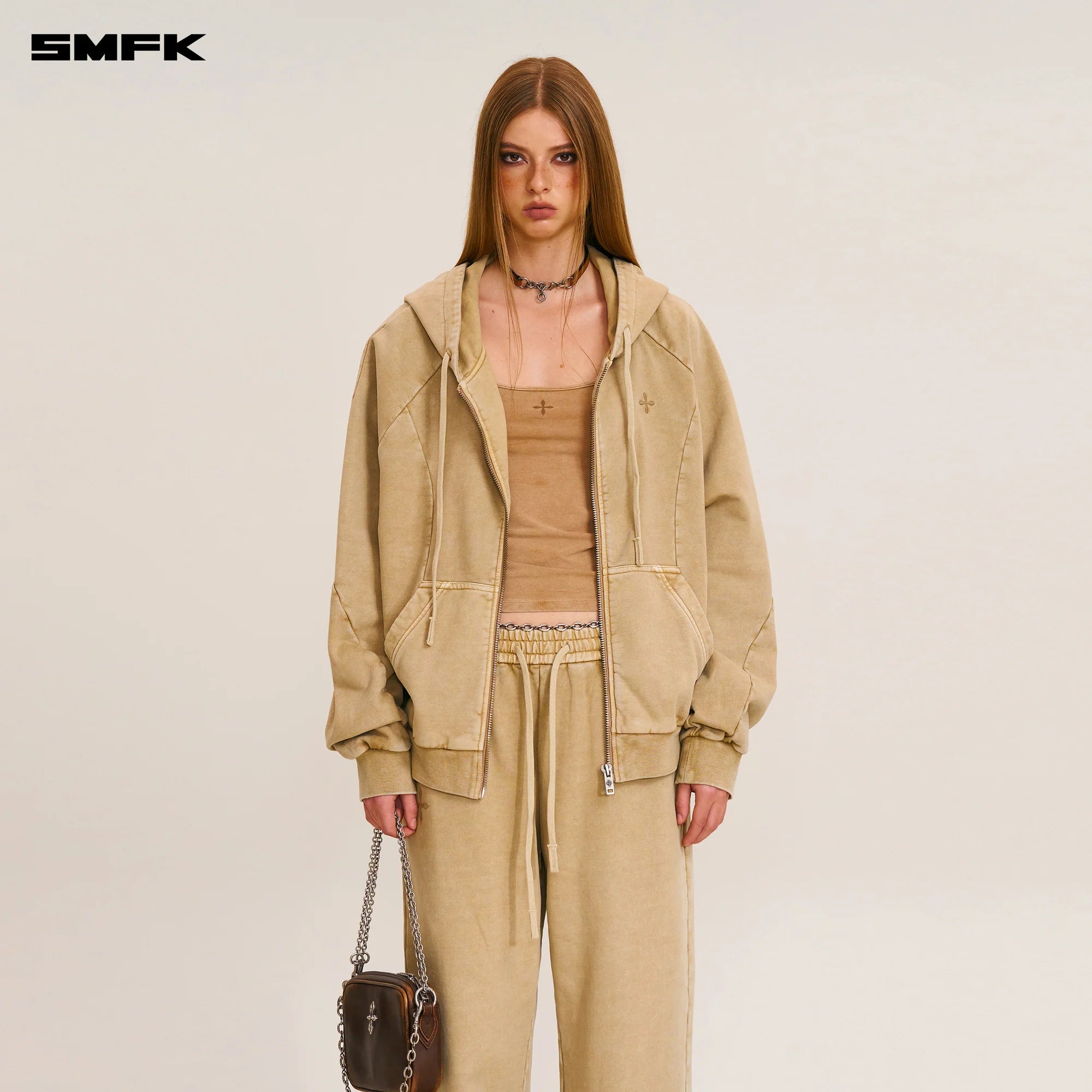 SMFK 2511 野性复古阔身运动拉链帽衫 褪色沙漠