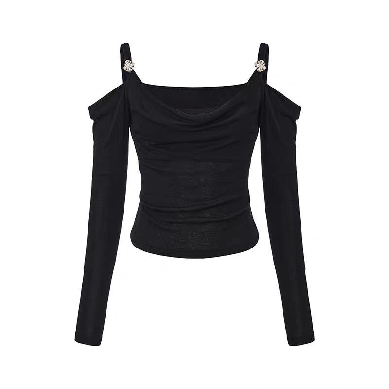 KINGWEN 2511 露肩荡领吊带修身长袖 黑