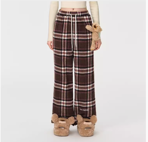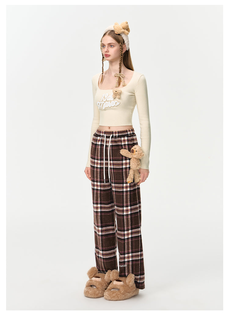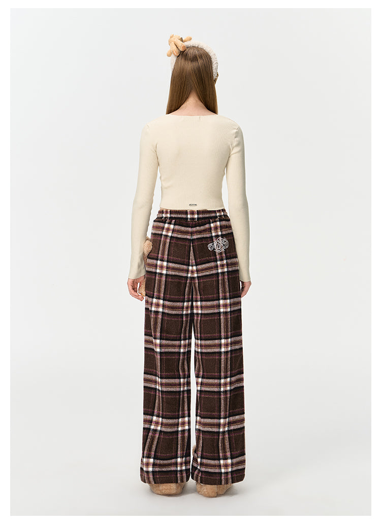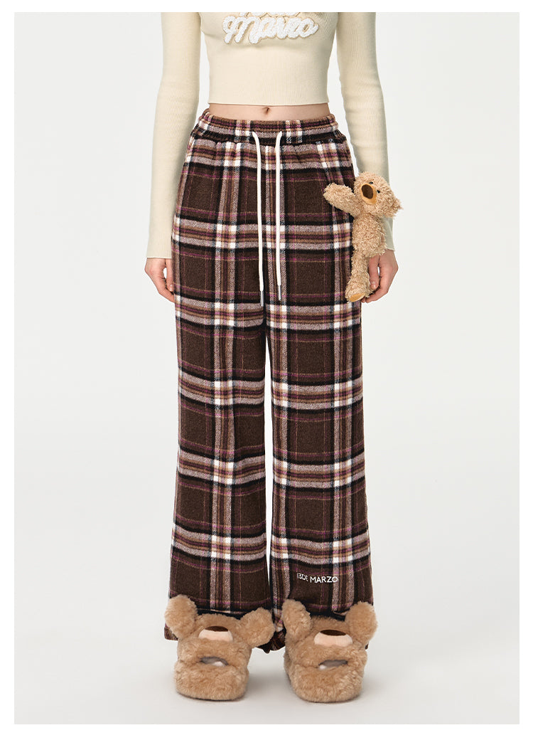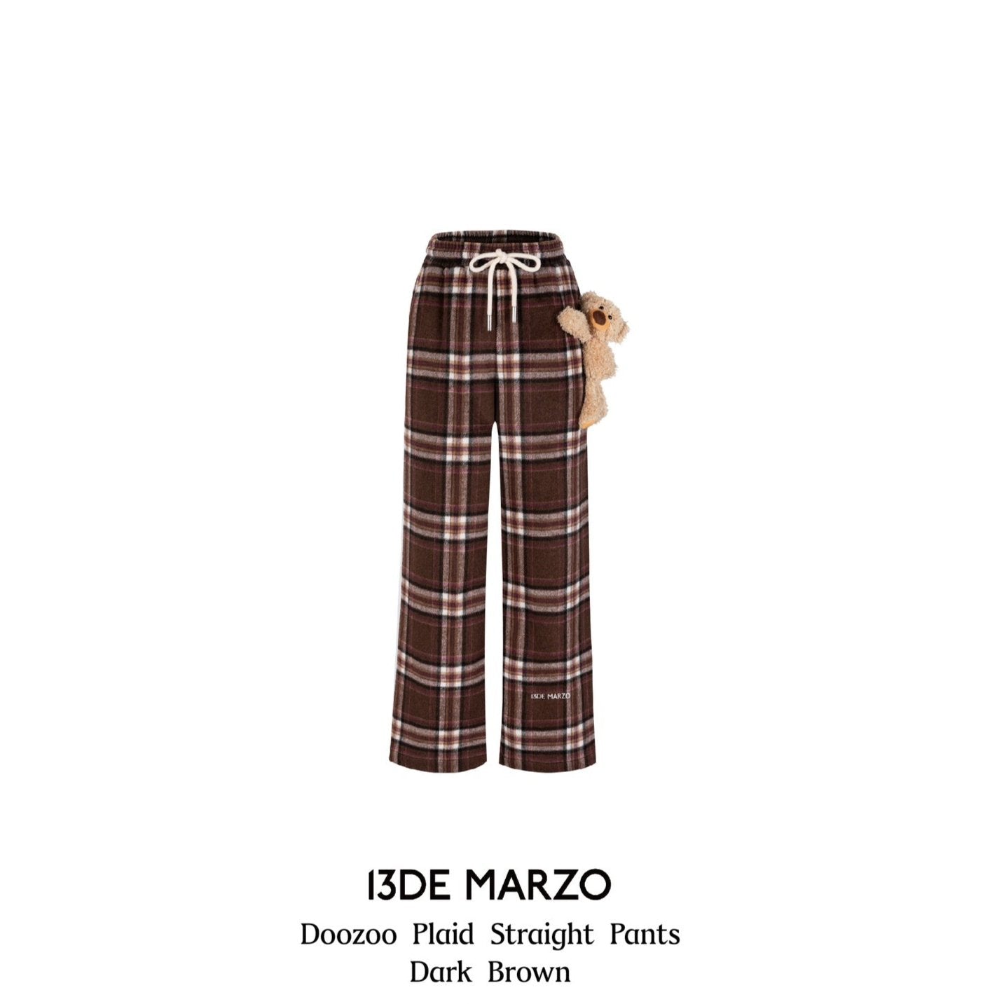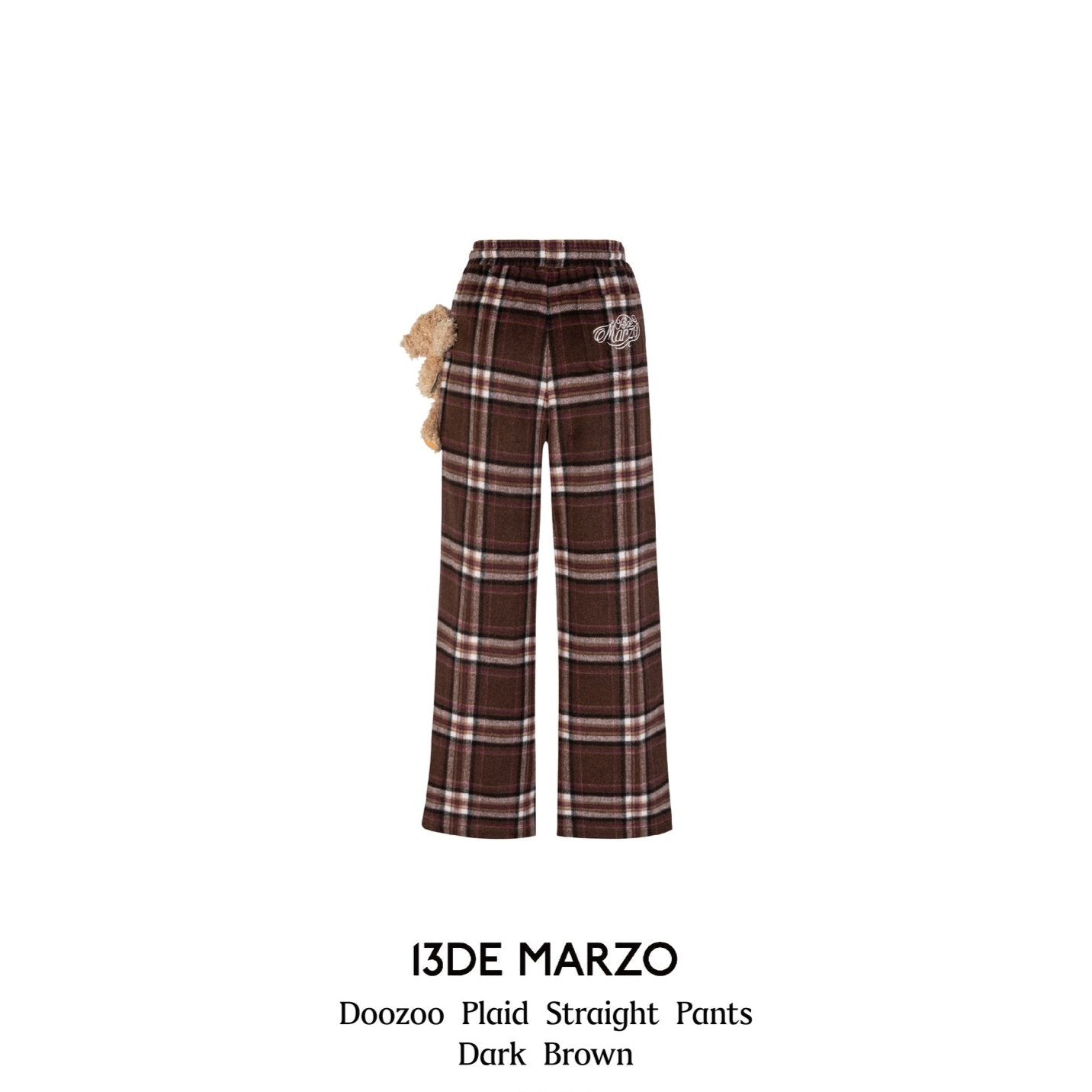 13DE MARZO | 2408 Doozoo Plaid Straight Pants Dark Brown