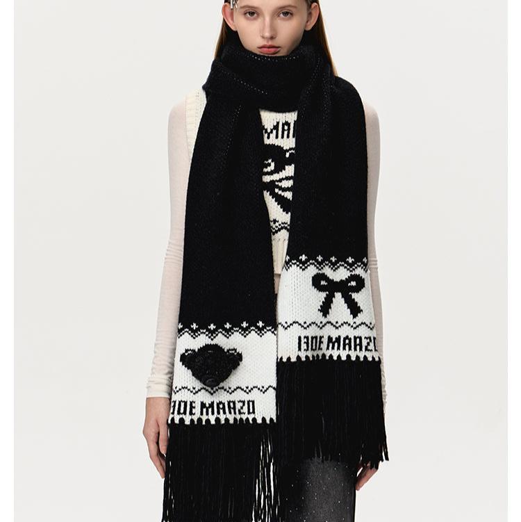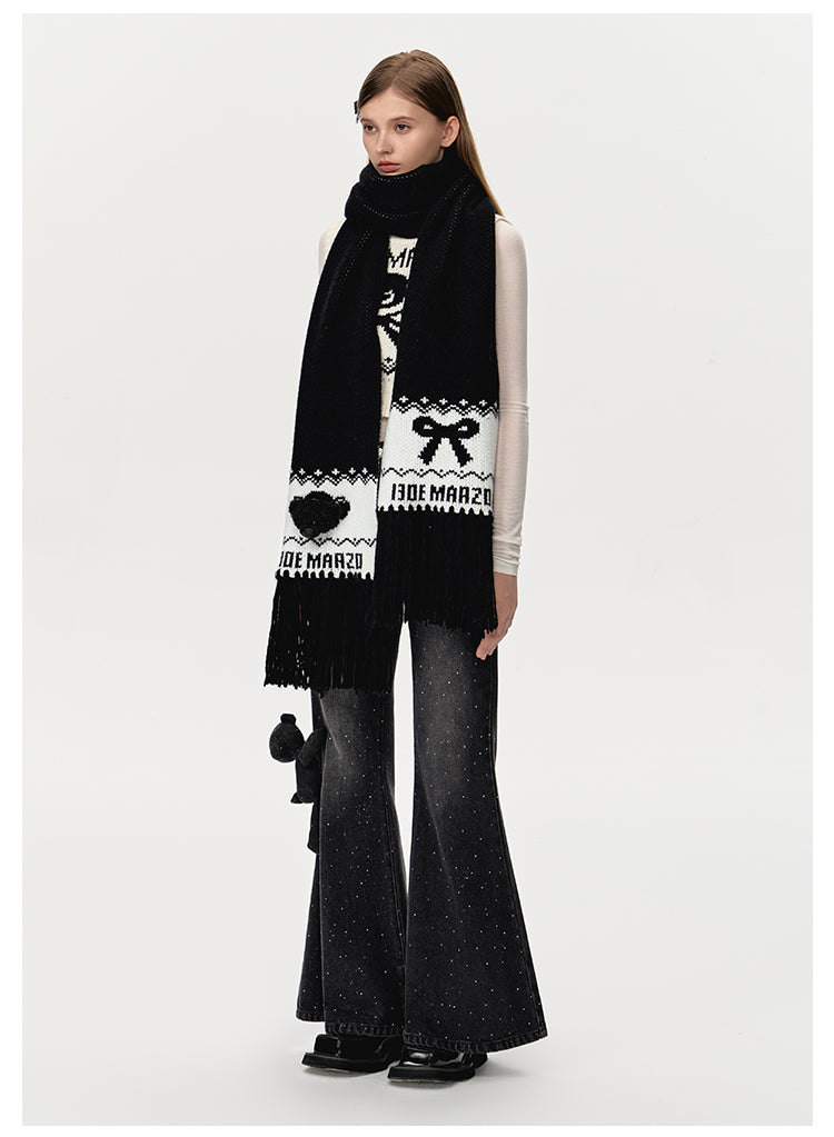 13DE MARZO | 2412 Fair Isle Bear Knit Scarf Black