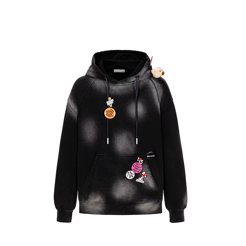 13DE MARZO | 2509 Badge Retro Hoodie Black