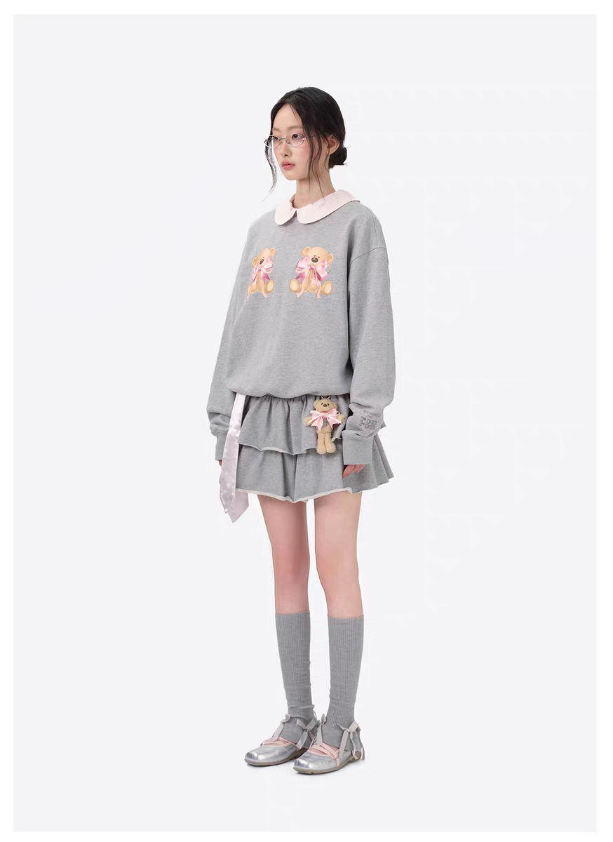 13DE MARZO | 2510 RONRON Bear Ruffle Skort Grey