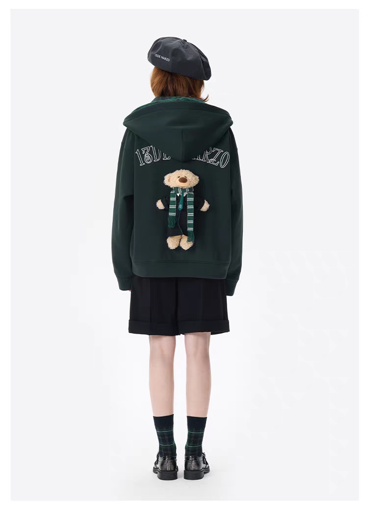 13DE MARZO | 2511 Harry Potter Hogwarts Four Houses Bear Zipper Hoodie Green